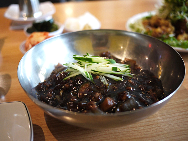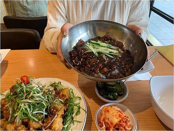 這道炸醬麵吃的時候一定要趕快拌開,因為我們拍照拍太久了,導致麵條有點拌不開థ౪థ,油亮油亮的黑嚕嚕的醬汁,配上清爽小黃瓜,讓人一口接一口,跟台灣的炸醬麵口感十分的不同,韓式的口感偏甜一些,麵條口感也比較Q彈,每一口都吃得到滿滿的醬汁跟料,跟別家韓式料理比較不同的地方在於,大發居然有滿滿的海鮮!真的是CP值很高的一家韓式料理店~
